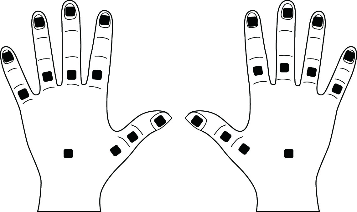 每只数据手套包含12个惯性传感器,惯性传感器的分布为:大拇指3个,食指2个,中指2个,无名指2个,小拇指2个,手背1个,传感器基本覆盖全部的手指关节,能使手套采集到的手的动作更加接近真实的手的动作。我们在惯性传感器内置了高性能的MEMS IMU及三轴磁力计。其中加速度计的量程为±16g(也就是手的运动加速度如果超过156.8(m/s²),那么手的动作也就采集的不够精准了),陀螺仪的量程为±2000dps(也就是手的单向自旋如果超过5.5圈每秒,那么手的动作也就采集的不够精准了),传感器的量程覆盖绝大多数情况下的手的动作。同时搭配了高动态的加速度计与陀螺仪,这样又可以更高频次采集手的动作,能够以更小的时间间隔细致的观察手的动作变化。为了FOHEART PLUS能够可靠一致的捕捉任何类型的手的运动,我们采用了更加优质的算法引擎,主要是采用卡尔曼滤波算法,将加速度、角速度、磁力值进行了深度的数据融合。FOHEART HMax在抗磁干扰方面也进行了更进一步的升级。为了纠正每只手套的随机误差,每副数据手套出厂前都都进行了标定和纠偏。数据手套内置了三轴加速度计、三轴陀螺仪、三轴磁力计.
